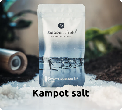 Set: Black and white Kampot pepper, lyophilized flakes of fermented Kampot pepper (Pepper Flakes)