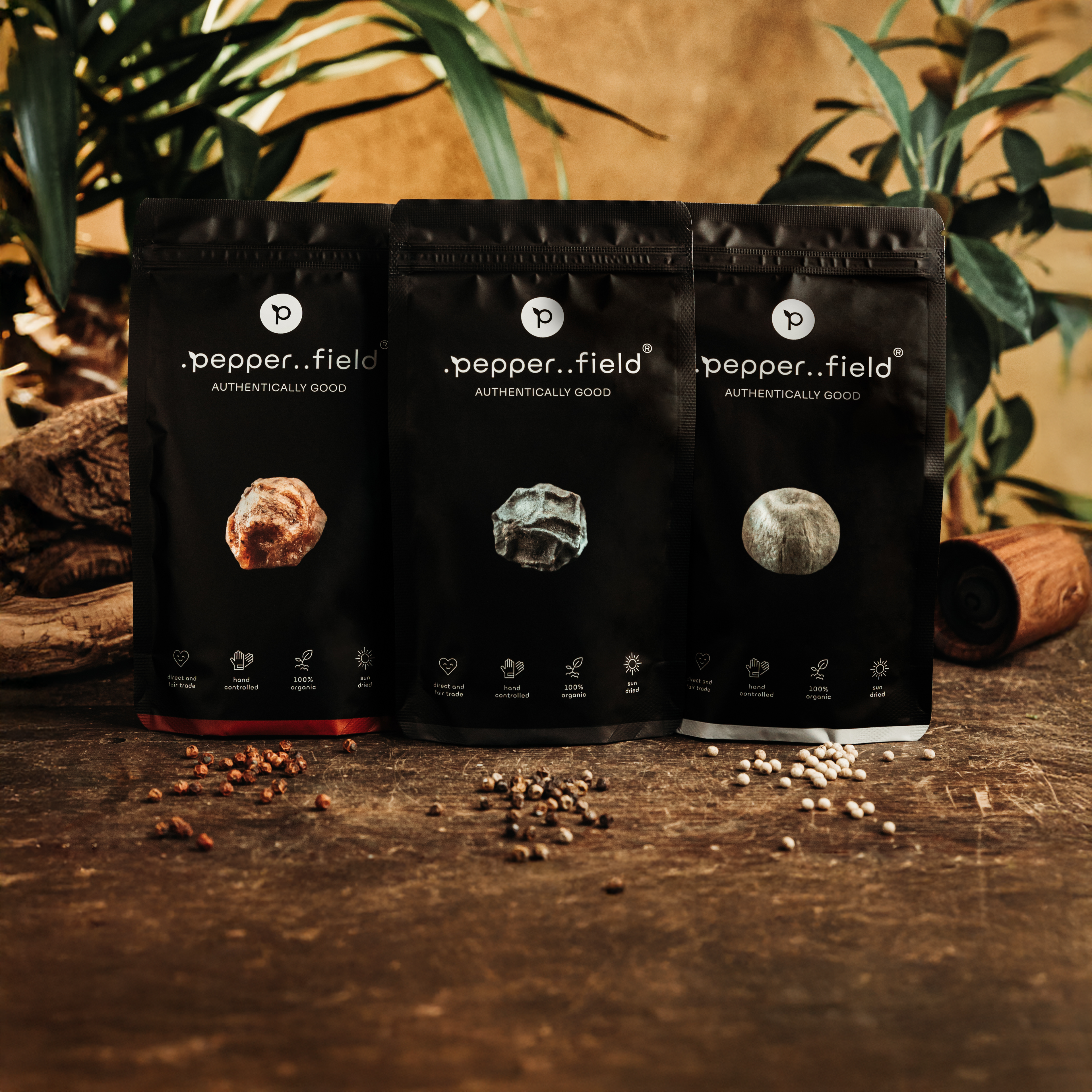 Pepper starter pack – Kampot black, red, and white pepper (3× 20 g)