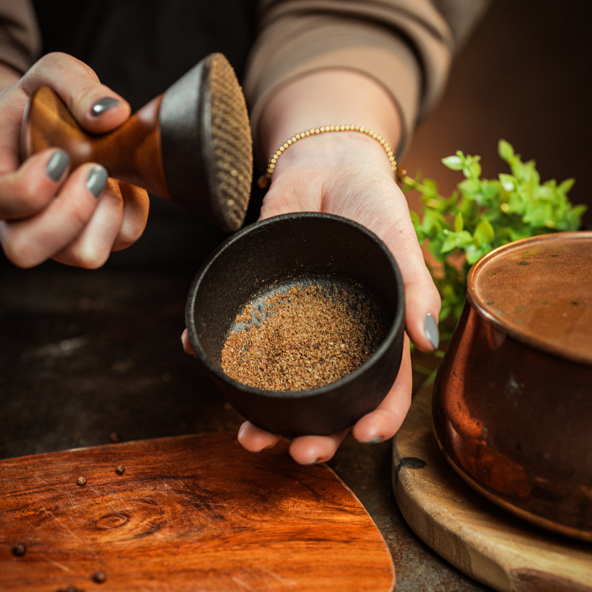 Vous pouvez utiliser un mortier pour le poivre de Kampot, les épices et les herbes.