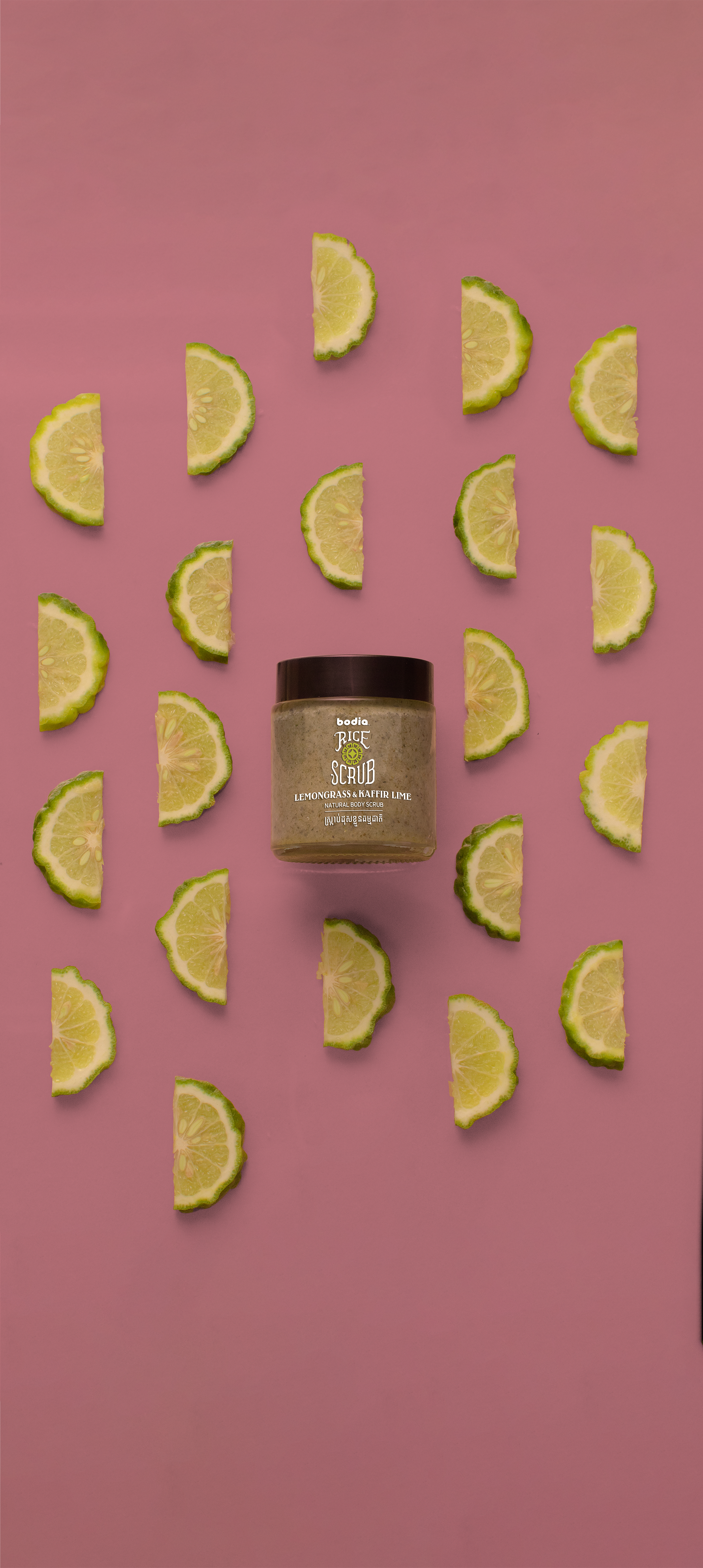 •    A gentle body scrub combines the properties of a natural balm and the softness of rice powder with the energizing scent of citron grass and camphor lime, creating a pleasant sensory experience for the daily body care ritual