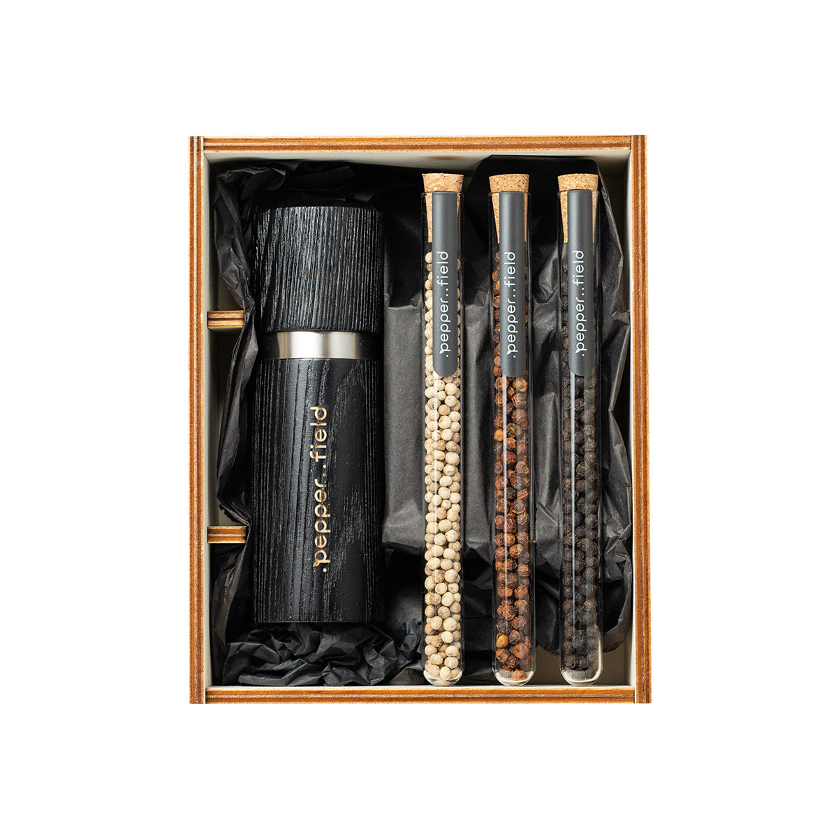 Set of test tubes with 3 types of Kampot pepper + grinder in a gift box (3× 10 g)